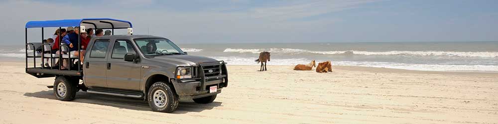 Descendants of the original colonial Spanish Mustangs, the Corolla Wild Horses have 7,500 pristine acres to roam on the “four-wheel drive only” beaches North of Corolla and you can now just sit back comfortably to witness their majesty. Wild horse tours start times very seasonally but take a look at our calendar below for current start times. Tours run all day long until Sunset. All tours are 2 hours in length.